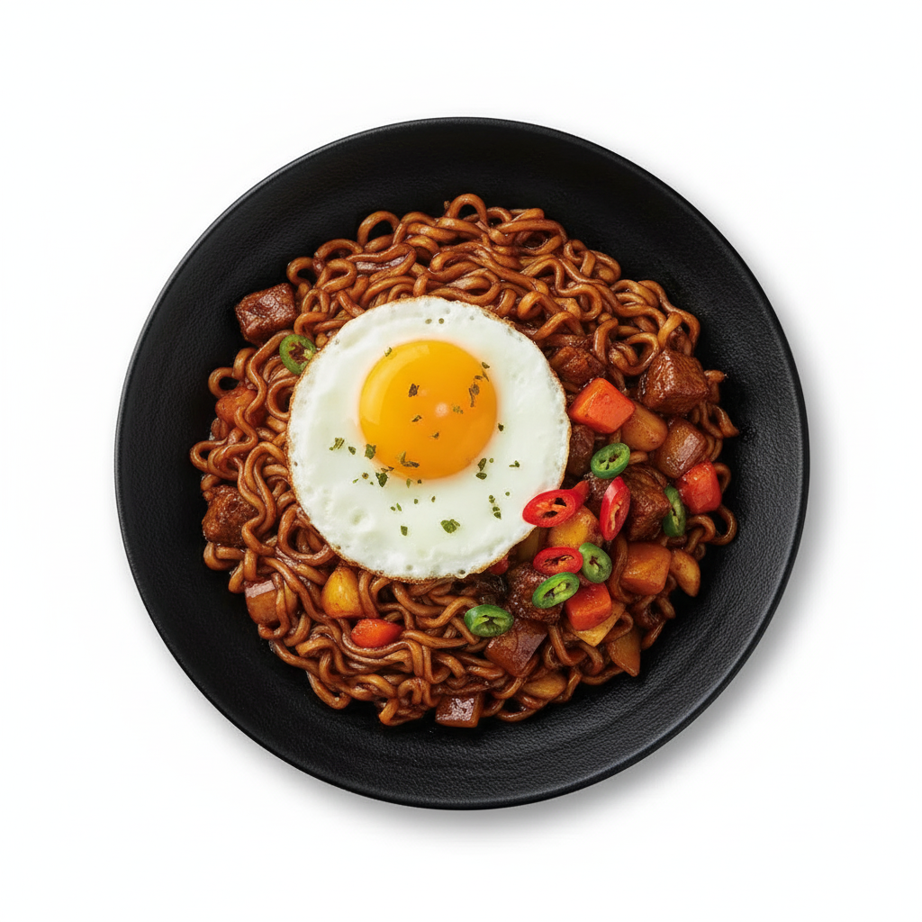 The savory and sweet taste that Korean men and women of all ages love is "too spicy! It is fused with the stir-fried noodles of Buldak to create a dish that allows you to taste the stimulation of the fluffy and savory jajang.