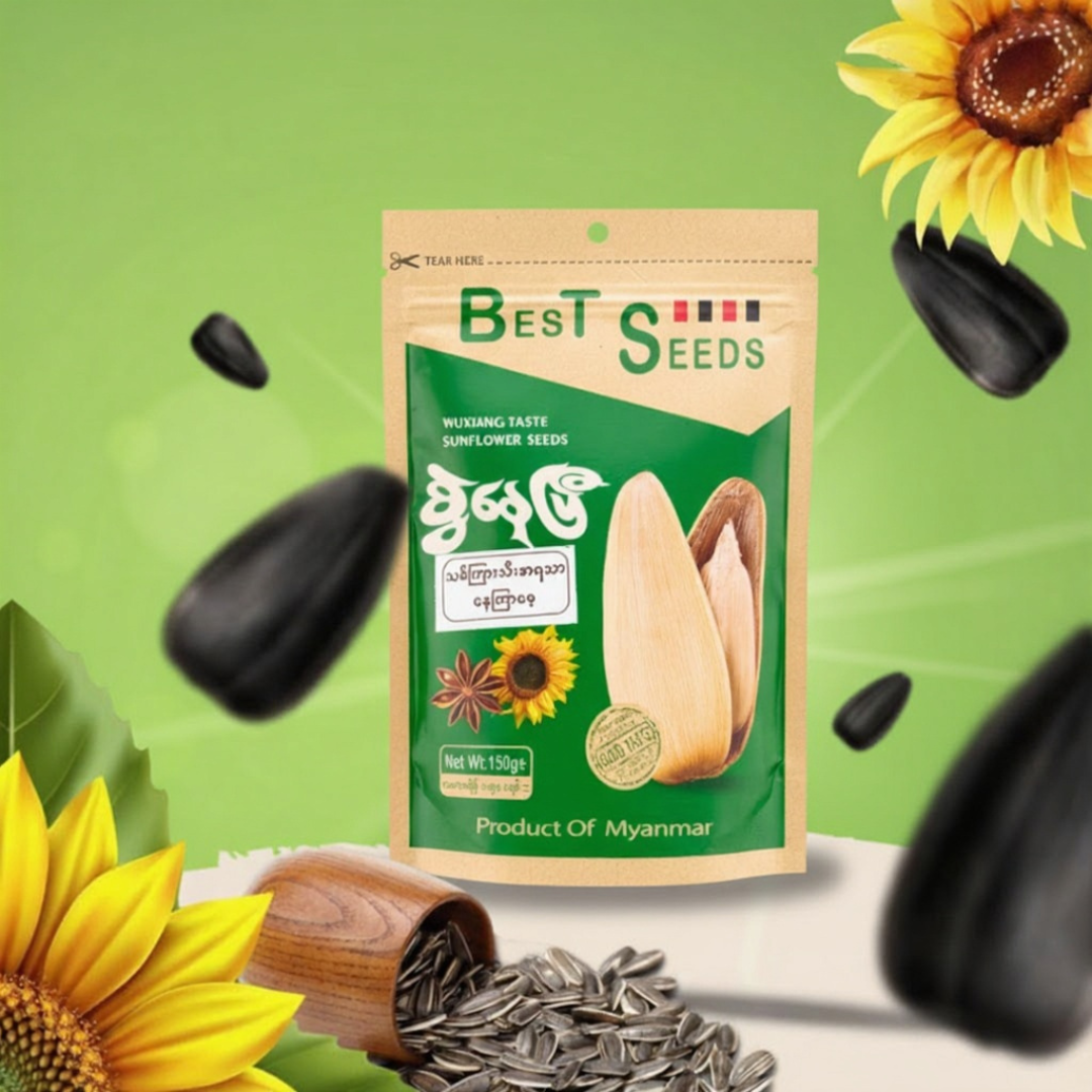 Savor the rich, aromatic flavor of BEST SEEDS Wuxiang Taste Sunflower Seeds. Each premium seed is expertly roasted for a perfect crunch and coated in authentic Wuxiang (Five-Spice) seasoning, delivering a deep, savory taste in every bite. Proudly a Product of Myanmar, these high-quality sunflower seeds offer irresistible “Good Taste” for any snacking moment. Packed in a convenient 150g pouch, they’re perfect for enjoying on the go, sharing with friends, or relaxing with a flavorful treat.