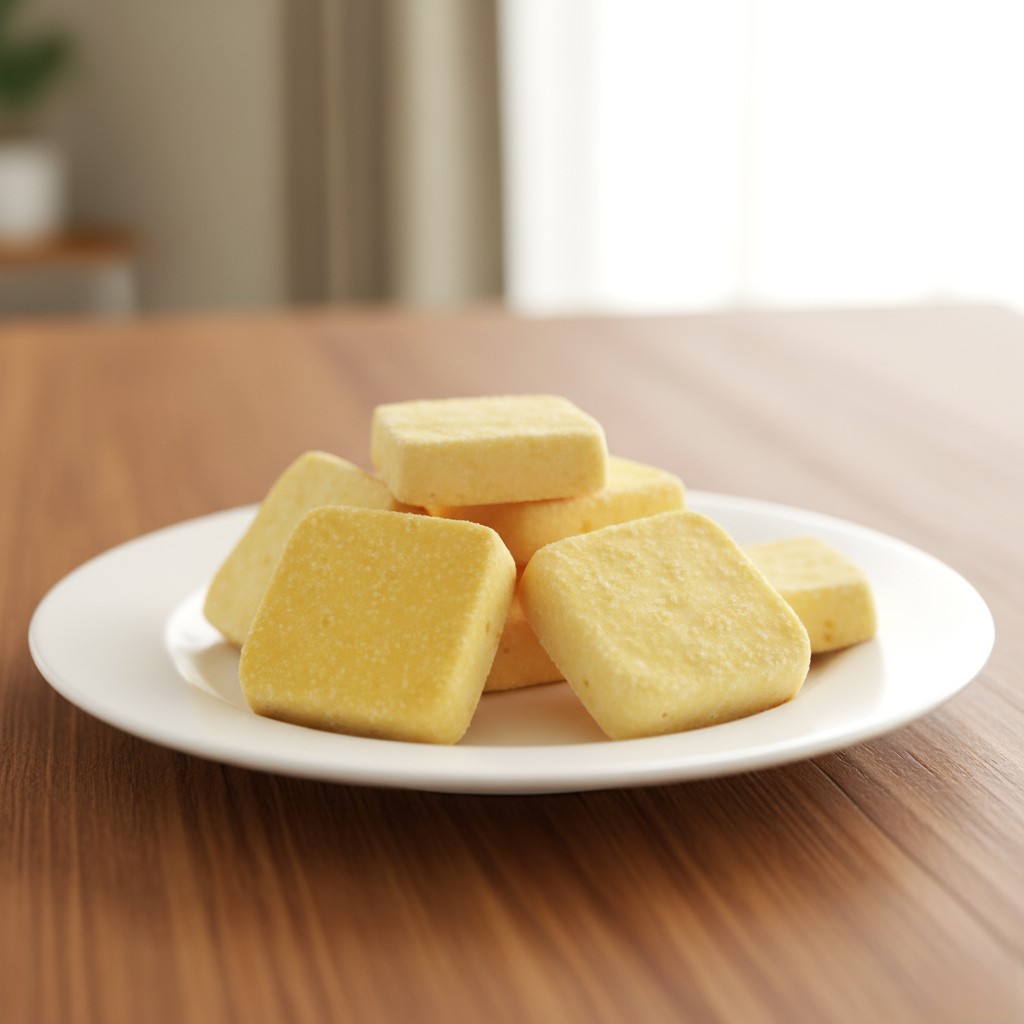 Ingredients: Sugar, eggs, wheat flour, vegetable oil, Whole milk powder, salt, passion fruit powder, dry yeast/emulsifier, sorbitol, pH adjuster, leavening agent, flavoring, glycerin, carotene coloring
