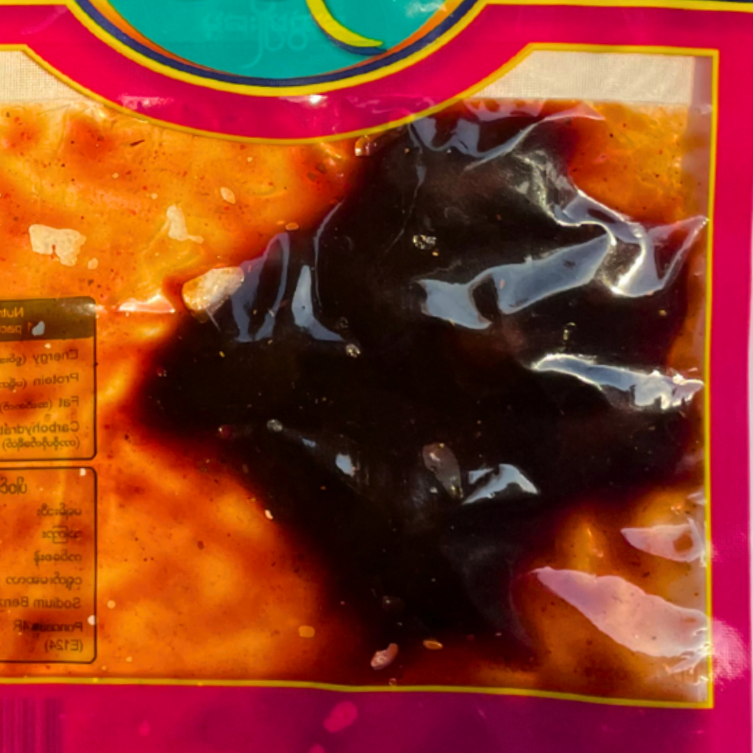 Ingredients: မရမ်းသီး၊သကြား၊ကပ်စေးနှဲ၊ငရုတ်၊မဆလာ၊Sodium Benzoate၊Ponceau 4R (E124)။