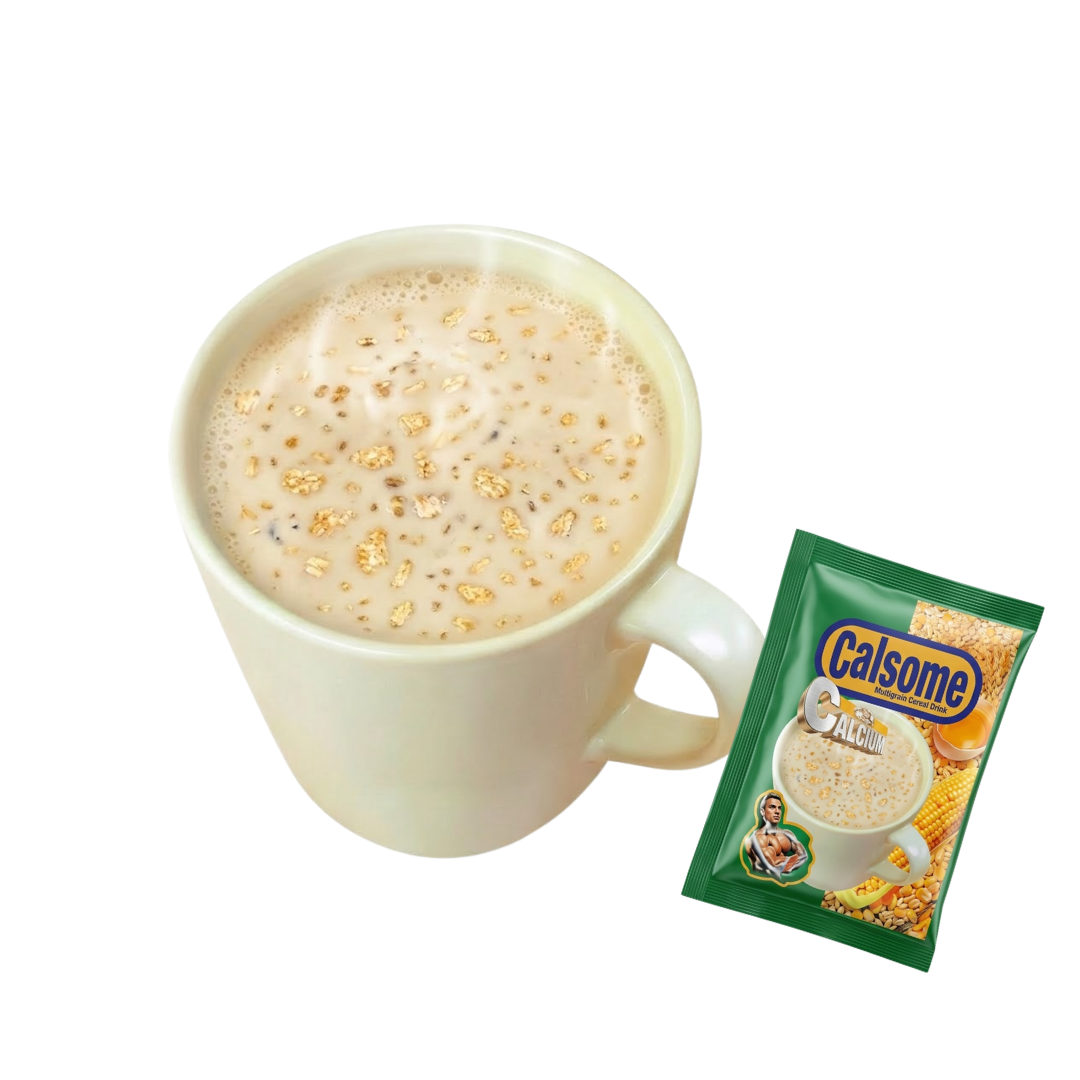 Calsome Nutritious Cereal Drink (အသင့်ဖျော်ကွေကာ) is a 100% Halal-certified beverage from Myanmar specifically formulated with added calcium to help promote stronger bones. This 750g value pack conveniently contains 30 individual sachets, featuring a hearty blend of wheat, corn, and soy protein cereal flakes paired with a creamy milk flavor. Its simple preparation makes it a reliable and wholesome breakfast or snack option for anyone looking to get a quick, tasty nutritional boost throughout the day. By combining essential cereal grains with a smooth texture, Calsome provides a balanced way to fuel your morning right out of the pantry.