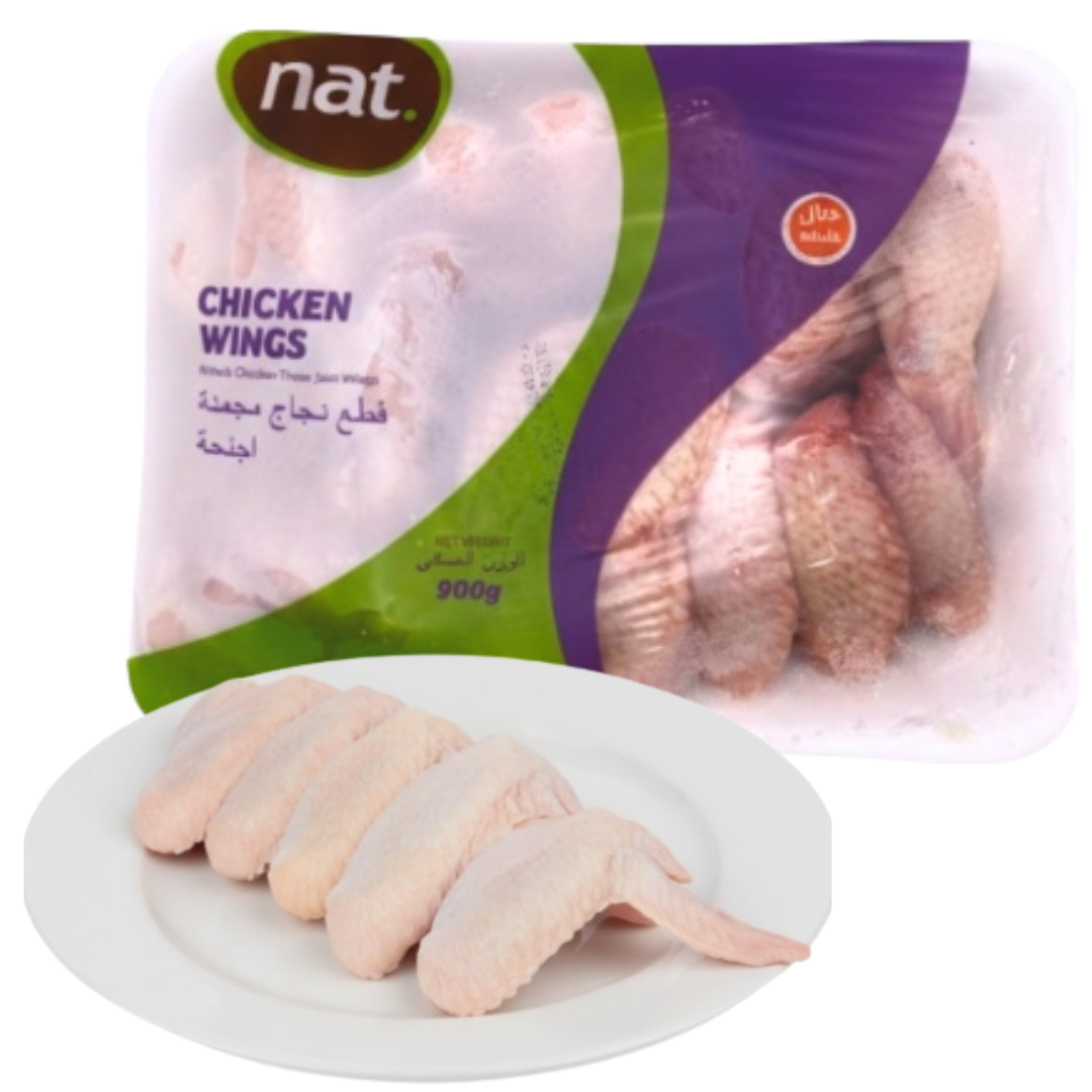 Prepare classic appetizers and delicious main courses with Nat Frozen Chicken Wings (ကြက်တောင်ပံ). This 900g pack of whole chicken wings is 100% Halal certified. Perfect for baking, frying, or grilling, these wings are a versatile and tasty addition to any meal.