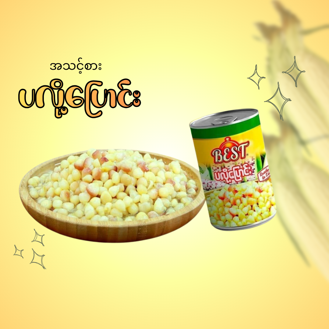 This 455g can of BEST White Corn (ပလို့ပြောင်း) provides a simple, nutritious, and 100% Halal option that is readily available for use in Asian and Southeast Asian recipes. The can contains steamed white corn kernels and water, offering a slightly sweet and tender texture that is perfect for incorporating into salads, soups, curries, or simply serving as a side dish. As a "Ready to Eat" convenience product, it saves preparation time and is a versatile addition to any family meal.