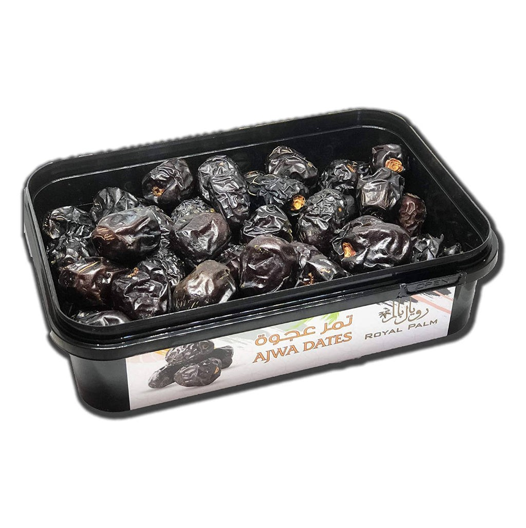 Royal Palm Ajwa Dates (400g) are organically produced and imported from the UAE. They are known for their rich, toffee-like sweetness and are a valuable source of fiber, protein, and vitamins.