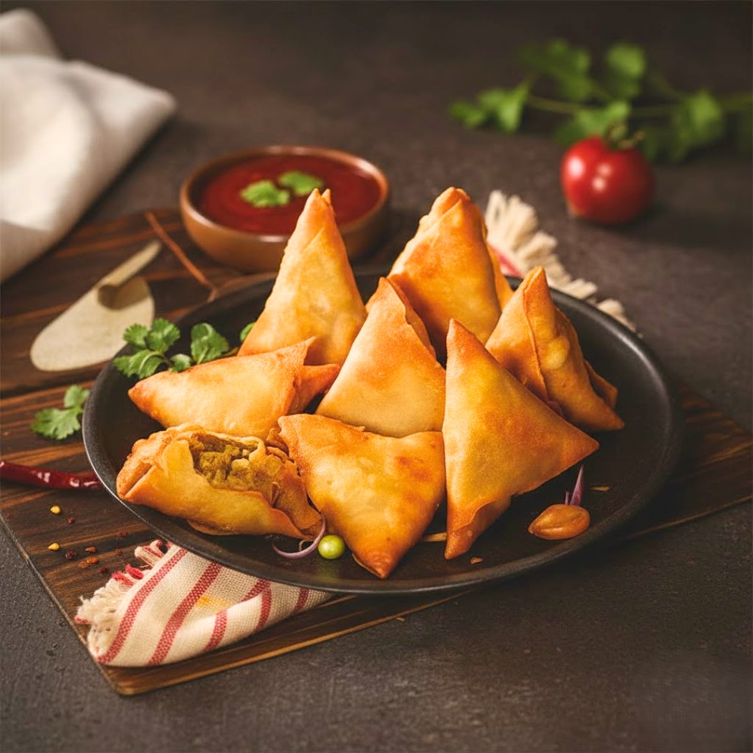 Golden Harvest Vegetable Samosas feature golden, crispy pastry triangles filled with a deliciously spiced vegetable mix. The hearty filling combines potatoes, carrots, and a fragrant blend of traditional spices such as ginger, garlic, cumin, and turmeric. Convenient and easy to prepare straight from frozen, these samosas are perfect as an appetizer, snack, or light meal offering authentic South Asian flavor and an irresistible crunch in every bite.