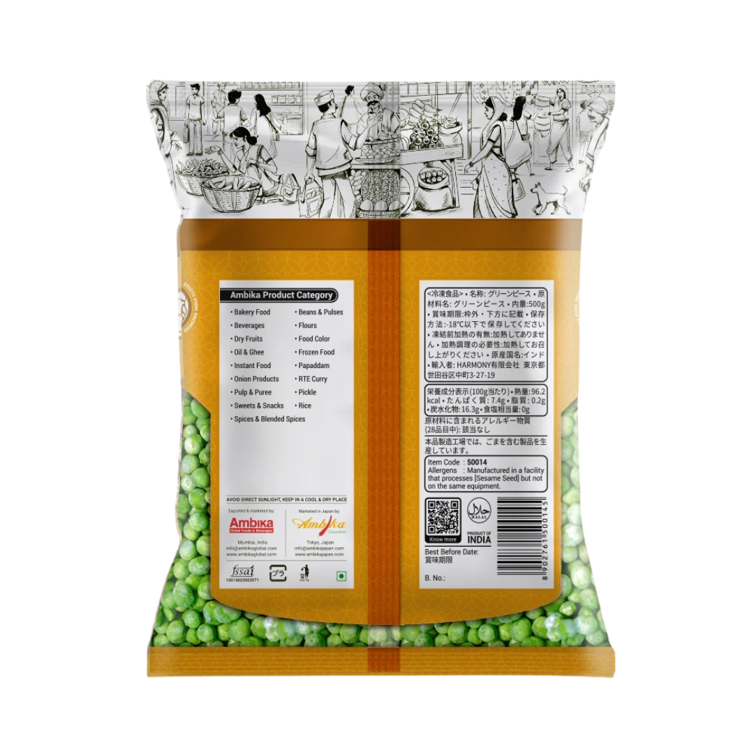 This 500g bag of Ambika Frozen Green Peas is a high-quality, 100% Halal certified vegetable staple that is widely used in South and Southeast Asian home cooking. Sourced from India, these peas offer a sweet, fresh taste and vibrant color, making them an essential ingredient for traditional dishes like Matar Paneer, vegetable curries, Biryani or spicy samosa fillings.