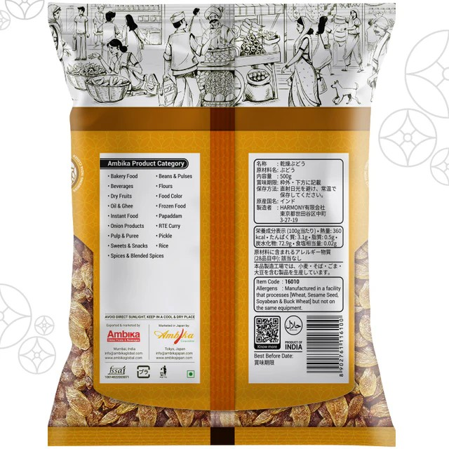 Ambika Raisin Brown is 100% natural, Bold size, length:14-20 mm, width: 8-10mm, unadulterated, hand picked sorted, premium quality, hygienically packed and free from any foreign matter, artificial color, flavor and preservatives.