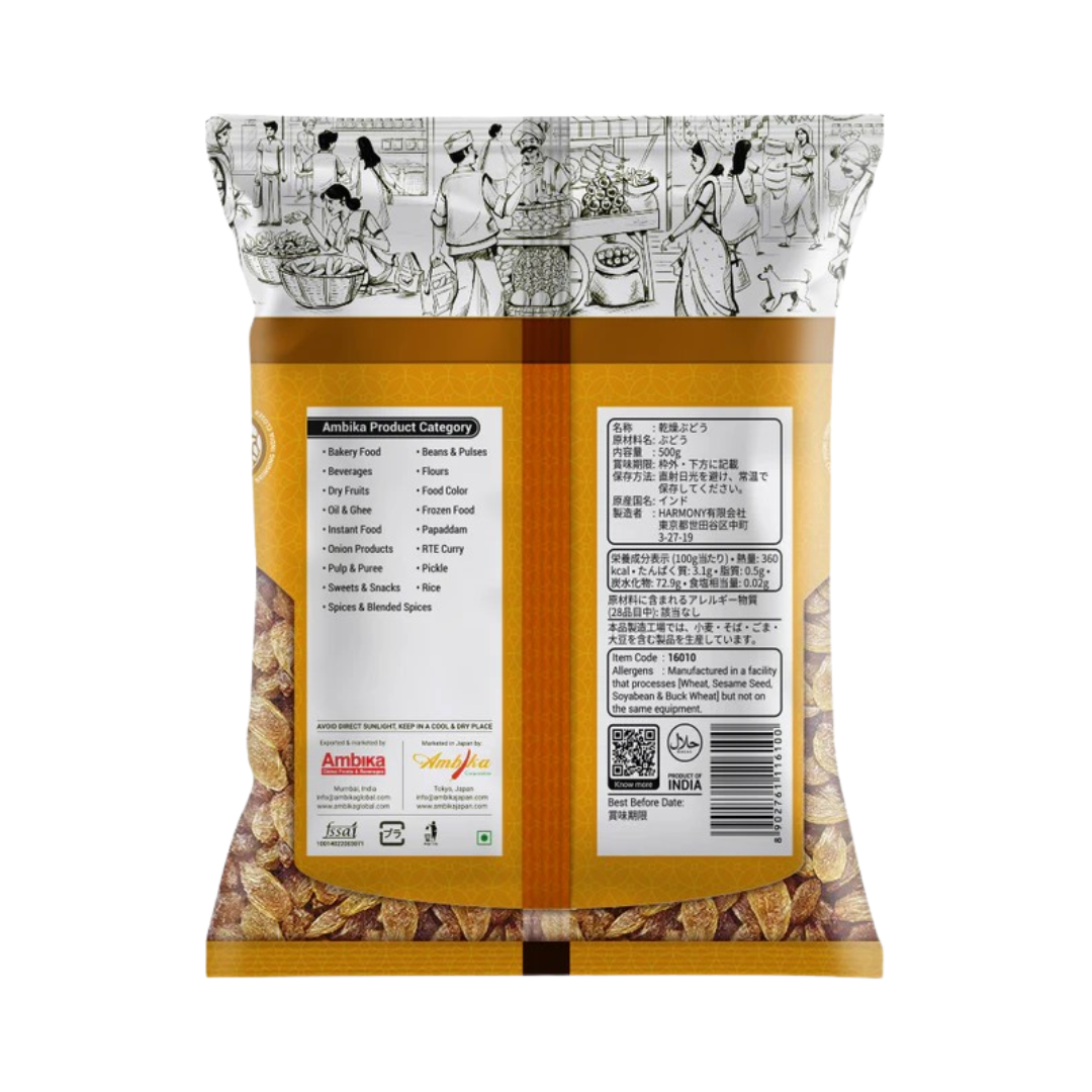 Ambika Raisin Brown is 100% natural, Bold size, length:14-20 mm, width: 8-10mm, unadulterated, hand-picked sorted, premium quality, hygienically packed and free from any foreign matter, artificial color, flavor and preservatives. Brown Raisin has a sweet taste which makes it an important ingredient in kheers and payasam, it is widely used in preparation of several sweets, specially the famous - Halwah is incomplete with a tinch of brown raisins.
