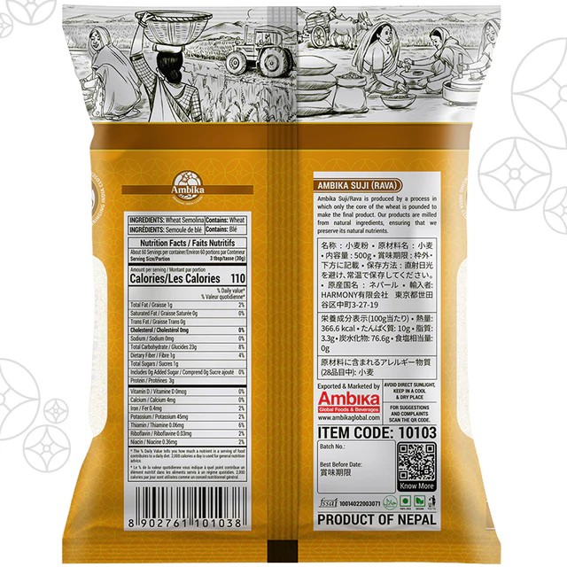 10103 (Ambika) Suji Big Nepal 500g Upma, Suji halwa, Coarse grained wheat